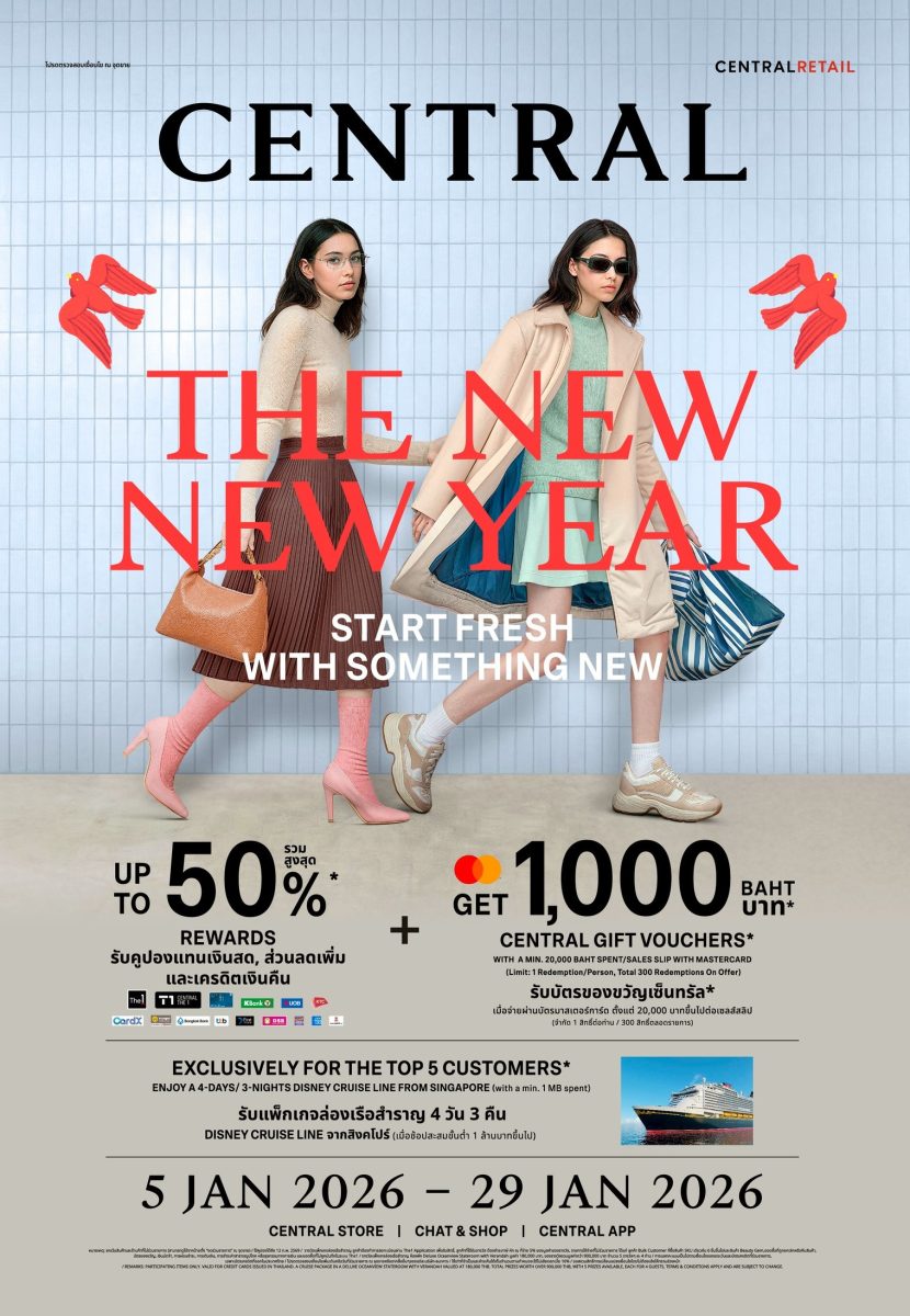 ห้างสรรพสินค้าเซ็นทรัล ในเครือเซ็นทรัล รีเทล จับมือ ลูกค้าคนสำคัญทั่วประเทศ เดินหน้าก้าวสู่ช่วงเวลาแห่งความสุขต้อนรับปีใหม่ปีม้า 2569 ส่งมอบประสบการณ์เหนือระดับอย่างต่อเนื่อง ทั้งช้อปปิ้ง การบริการ และอีเวนต์ใหญ่ตลอดทั้งปี สานต่อวิสัยทัศน์ห้างแห่งแรงบันดาลใจ จุดหมายปลายทางแห่งการช้อปปิ้งที่เป็นศูนย์กลางไลฟ์สไตล์ที่นักช้อปทั้งไทยและต่างชาติไว้วางใจประเดิมเปิดแคมเปญแรกของปีอย่างยิ่งใหญ่กับแคมเปญ “CENTRAL THE NEW NEW YEAR” – START FRESH WITH SOMETHING NEW เริ่มต้นความสดใสตลอดทั้งปีด้วยสินค้าทุกหมวดจากแบรนด์ชั้นนำที่คัดสรรอย่างดีเพื่อตอบโจทย์นักช้อปทุกสไตล์ พร้อมดีลพิเศษลดสูงสุดกว่า 30% ตั้งแต่วันที่ 5 มกราคม 2569 – วันที่ 29 มกราคม 2569 รวมถึงโปรโมชั่นเพื่อสายบิวตี้โดยเฉพาะกับ “CENTRAL BEAUTY THE NEW NEW GLOW” เอ็กซ์คลูซีฟดีลจากแบรนด์บิวตี้ชั้นนำ พิเศษ! ลูกค้าที่มียอดช้อปสูงสุด รับแพ็คเกจที่พักสุดหรู คลับเมด คานิ มัลดีฟส์ 3 วัน 2 คืน ห้อง Overwater Suite มูลค่า 120,000 บาท พร้อมของสมนาคุณอีกมากมาย นอกจากนี้ ยังมีดีลพิเศษเพื่อคนรักบ้าน กับ“CENTRAL THE NEW NEW HOME” ที่จัดเต็มสินค้าเครื่องใช้ไฟฟ้า เครื่องครัว เครื่องนอน และสินค้าเกี่ยวกับบ้านจากทุกแบรนด์ดัง ระหว่างวันที่ 18 มกราคม – 24 กุมภาพันธ์ 2569 ช้อปสนุกทุกแคมเปญที่ห้างเซ็นทรัลทุกสาขา, Central App และทุกช่องทางช้อปปิ้ง