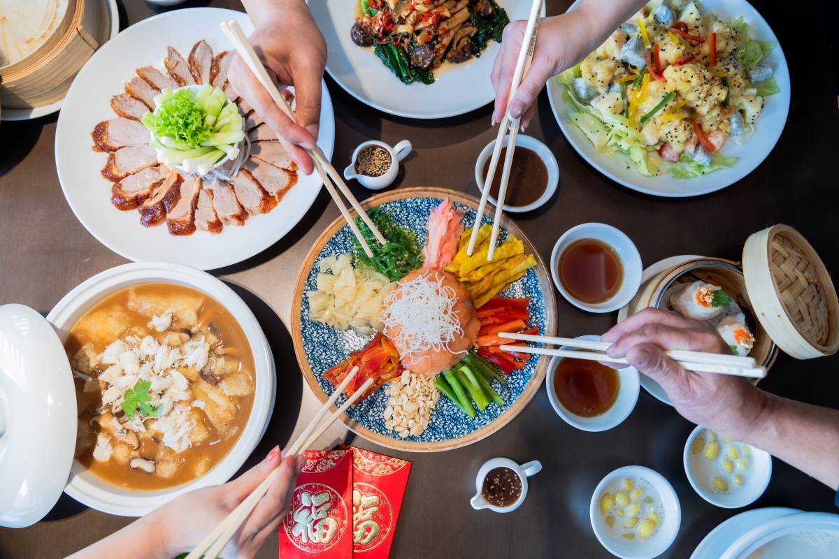 เริ่มต้นความอิ่มอร่อยแสนมงคลพร้อมหน้าจากเมนูสร้างสรรค์ใหม่ประจำเทศกาลตรุษจีนอย่าง “หยี่ซัง” สลัดมงคลแห่งความสมบูรณ์พูนสุขจานเด่น ที่พร้อมให้สมาชิกทุกคนในครอบครัวคลุกเคล้าส่วนผสมความหมายมงคลหลากชนิดร่วมกันอย่างสุขสำราญ เปรียบเสมือนการแบ่งปันความอิ่มเอมพร้อมหน้ากับความเชื่อเพื่อให้โชคดีและชีวิตประสบความสำเร็จมากขึ้น หรือจะเป็นติ่มซำรายการใหม่อย่าง “ฮะเก๋าหอยเชลล์กุ้ง” ประดับเกล็ดทองคำเปลวบริสุทธิ์แทนคำอวยพรแห่งความมั่งคั่งร่ำรวยอีกขั้น ก่อนจะลองเลือกสรรความอร่อยจานเด่นยอดนิยมจากเมนู อะ ลา คาร์ท (À la carte) ที่ล้วนสื่อความหมายมงคลเต็มที่ถึงความร่ำรวย ความโชคดี อายุยืนยาว และความอุดมสมบูรณ์ อาทิ กระเพาะปลาผัดเนื้อปู กุ้งผัดพริกเกลือ เนื้อปลากระพงผัดเจ้าสัว ปลากะพงนึ่งมะนาว รวมถึงอาหารจานโปรดของทุกครอบครัวอย่างเป็ดปักกิ่งและหมูหันสูตรต้นตำรับ
