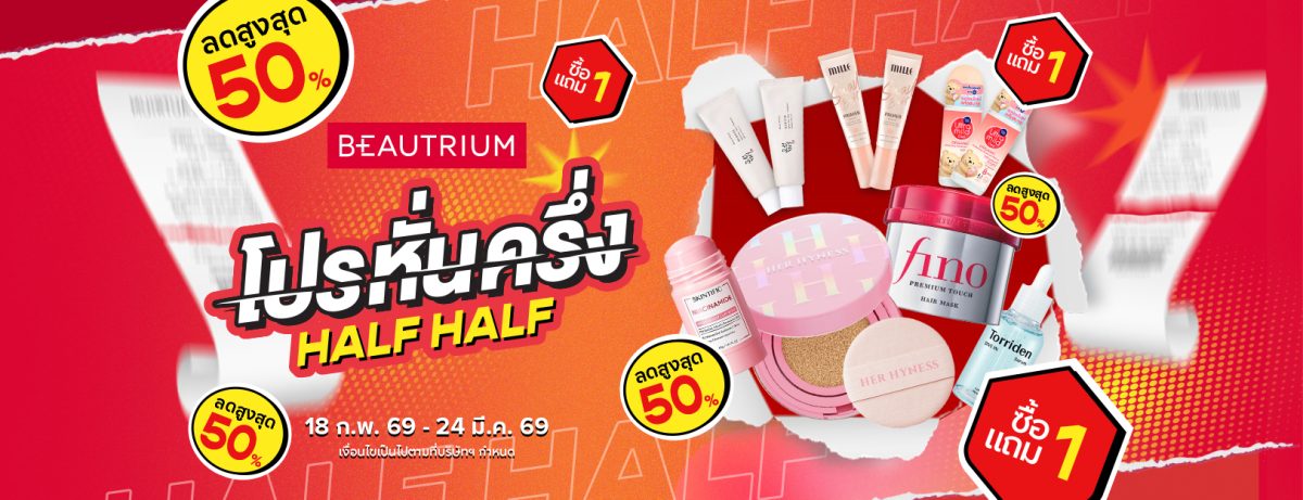 BEAUTRIUM เอาใจสายตุน ส่งโปรลดแรงต้นปี ราคาดีทุกดีล ลด 50% และ 1 แถม 1 ทั้งร้าน กับ “BEAUTRIUM HALF HALF โปรหั่นครึ่ง”
