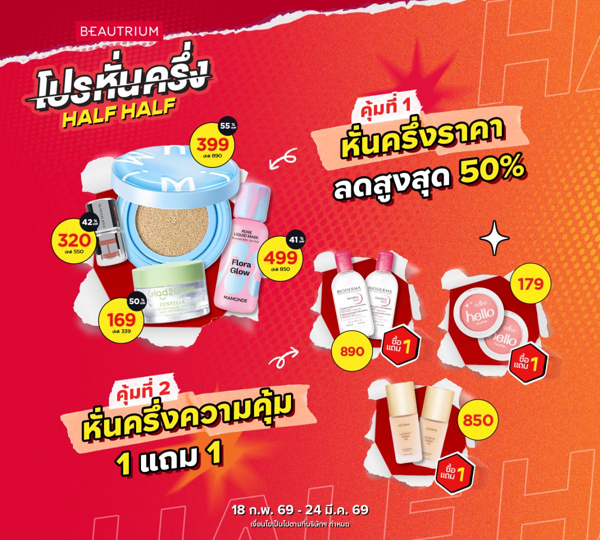 เตรียมลิสต์ตุนของให้พร้อม แล้วไปช้อปโหดกับบิวเทรี่ยมโปรหั่นครึ่ง! ได้แล้ววันนี้ที่ BEAUTRIUM ทุกสาขาและช่องทางออนไลน์ตั้งแต่วันที่ 18 กุมภาพันธ์ ถึง 24 มีนาคม 2569 นี้เท่านั้น