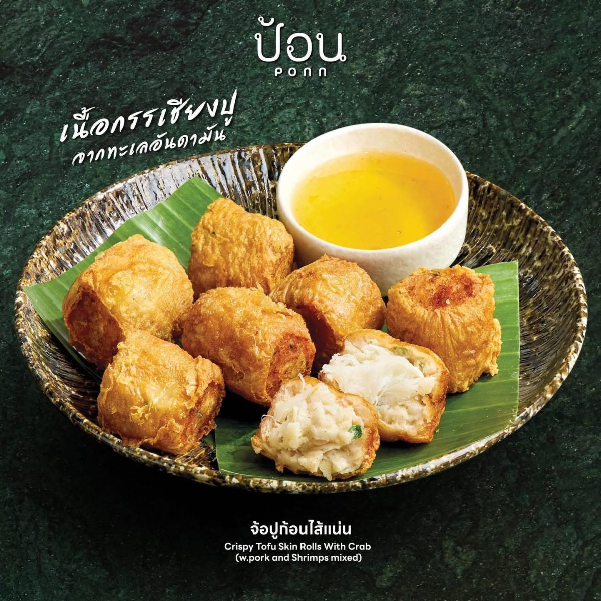 ปูยังเป็นเมนูชูโรง ไม่ว่าจะเป็น เนื้อปูผัดผงกะหรี่ ที่ผัดจนหอมเครื่องเทศ เนื้อปูแน่นหวานธรรมชาติ ราคา 395 บาท หรือ จ๊อปูก้อนไส้แน่น ที่อัดเต็มด้วยเนื้อปูและกรรเชียงชิ้นโต กัดคำไหนก็เจอปูเน้น ๆ เต็มคำ หอมกลิ่นเครื่องเทศกำลังดี ห่อฟองเต้าหู้ทอดจนกรอบนอกนุ่มใน เสิร์ฟพร้อมน้ำจิ้มสูตรเฉพาะ เพิ่มความอร่อยในทุกคำในราคา 285 บาท