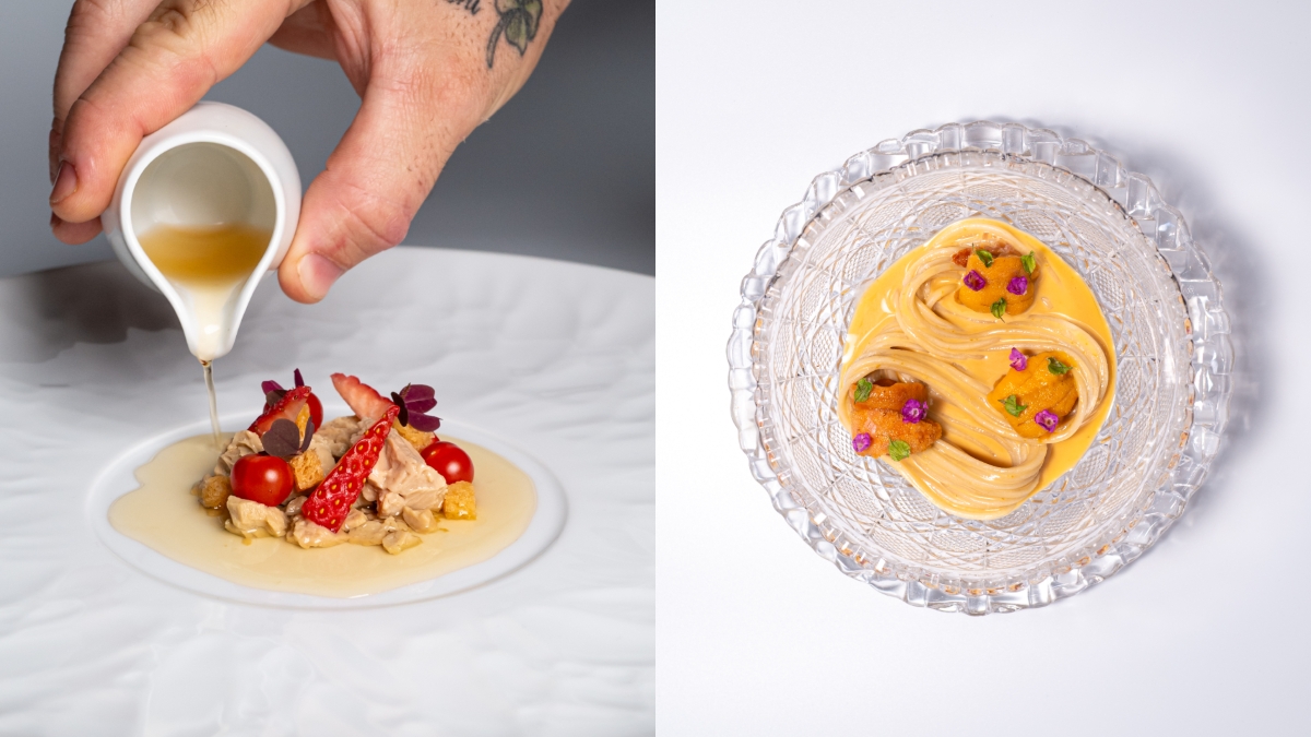 “Spring Guestronomic Journey” นำเสนอประสบการณ์การรับประทานอาหารที่ถ่ายทอดผ่านวัตถุดิบระดับพรีเมียม โดยเน้นการจัดวางที่สะท้อนถึงความคิดสร้างสรรค์และมนต์เสน่ห์แห่งฤดูกาล ทุกเมนูถูกร้อยเรียงอย่างมีลำดับเพื่อชูเอกลักษณ์ของวัตถุดิบหลัก เริ่มต้นด้วยความสดชื่นจาก ‘Baigai Sea Snail and Kohlrabi’ ที่ผสานความมีชีวิตชีวาของกรีนกัซปาโชและความหอมสดชื่นจากชิมิชูรี เปรียบเสมือนการตื่นเช้ามาพบกับความเขียวขจีของฤดูใบไม้ผลิ ก่อนจะนำท่านไปพบกับความสมดุลอันเหนือระดับในเมนู ‘Foie Gras Terrine with Sakura Leaf’ ที่มอบความสมดุลระหว่างความมันละมุนของฟัวกราส์และความหวานสดของมะเขือเทศ Amela และสตรอว์เบอร์รี Amaou มอบประสบการณ์รสสัมผัสที่หลากหลายแต่หลอมรวมเป็นหนึ่งเดียวได้อย่างสมบูรณ์แบบ
