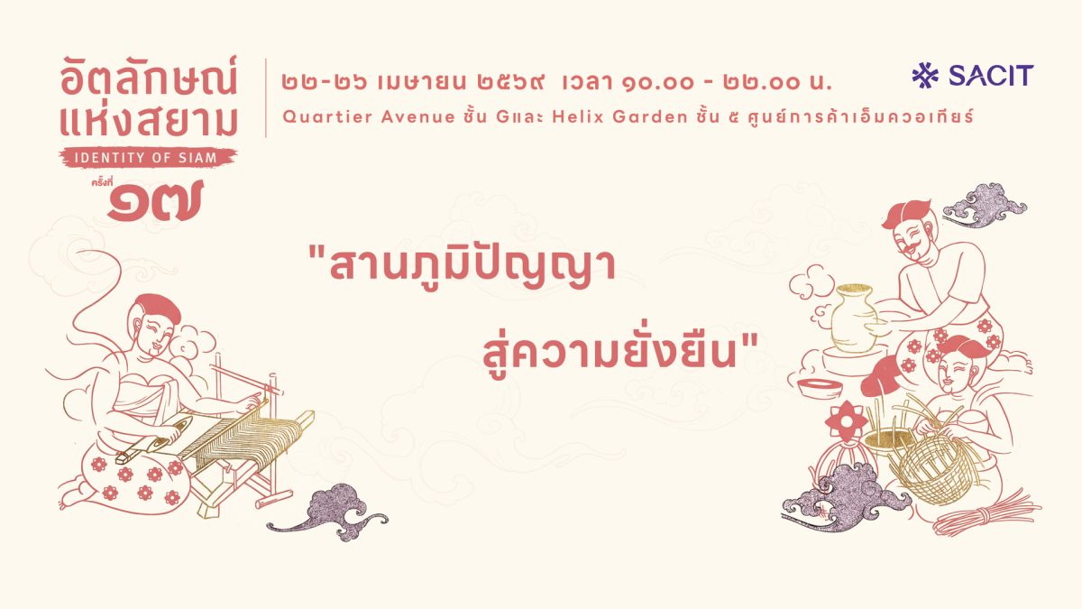 สถาบันส่งเสริมศิลปหัตถกรรมไทย (องค์การมหาชน) หรือ SACIT เตรียมจัดงาน “อัตลักษณ์ แห่งสยาม ครั้งที่ 17” เวทีสำคัญในการขยายตลาดและสร้างรายได้ให้ผู้ผลิตงานศิลปหัตถกรรมไทยทั่วประเทศ รวบรวมผลงานคุณภาพจากครูศิลป์ของแผ่นดิน ครูช่างศิลปหัตถกรรม และทายาทช่างศิลปหัตถกรรม เปิดโอกาสเชื่อมต่อผู้ผลิตสู่ผู้บริโภคยุคใหม่ เพิ่มมูลค่าและต่อยอดสู่ตลาดทั้งในและต่างประเทศ ภายใต้แนวคิด “สานภูมิปัญญา สู่ความยั่งยืน” ระหว่างวันที่ 22 – 26 เมษายน 2569 ที่ศูนย์การค้าเอ็มควอเทียร์ กรุงเทพฯ