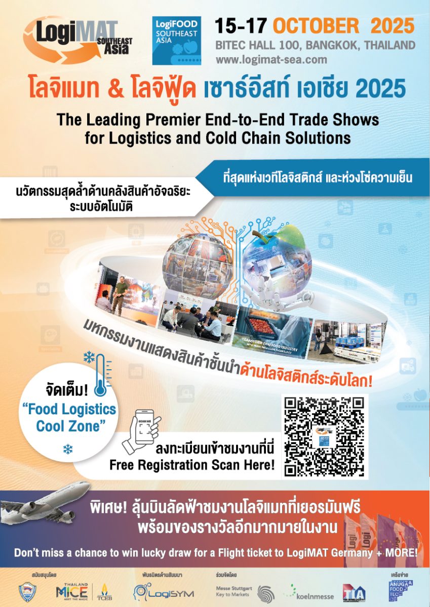 - ห้ามพลาด! “LogiMAT & LogiFOOD Southeast Asia 2025” วันที่ 15 – 17 ตุลาคม 2568 ณ ฮอลล์ 100 ศูนย์นิทรรศการและการประชุมไบเทค กรุงเทพฯ ลงทะเบียนเข้าชมงานฟรี: https://registration.eventpassinsight.co/registration/profile/lmlf25/visitor