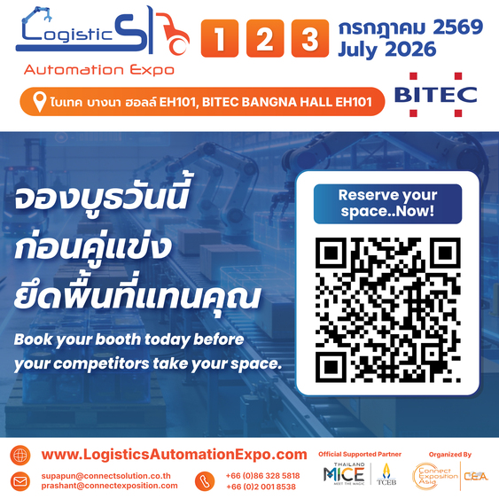 ร่วมเป็นส่วนหนึ่งในการนำเสนอโซลูชันของคุณ เพื่อก้าวนำตลาด Logistics Automation ก่อนใคร จองบูธวันนี้ ก่อนคู่แข่งยึดพื้นที่แทนคุณ