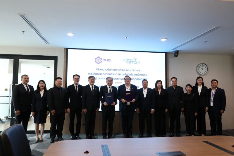 กระทรวงการอุดมศึกษา วิทยาศาสตร์ วิจัยและนวัตกรรม(อว.) โดย สำนักงานพัฒนาวิทยาศาสตร์และเทคโนโลยีแห่งชาติ(สวทช.) ร่วมกับ กระทรวงอุตสาหกรรม โดย การนิคมอุตสาหกรรมแห่งประเทศไทย (กนอ.) จัดพิธีลงนามบันทึกความร่วมมือทางวิชาการ (MOU) การพัฒนาอุตสาหกรรมด้วยเทคโนโลยีและนวัตกรรมให้แก่ผู้ประกอบการอุตสาหกรรมในนิคมอุตสาหกรรม เพื่อบูรณาการองค์ความรู้ทางวิทยาศาสตร์และเทคโนโลยีเพื่อเพิ่มขีดความสามารถในการแข่งขันให้กับภาคอุตสาหกรรมไทย