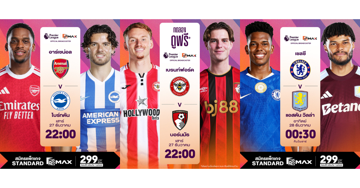 เปิดฉากกัน เวลา 03.00 น. วันเสาร์ที่ 27 ธันวาคม 2568 (คืนวันศุกร์ที่ 26 ธันวาคม2568) ถ่ายทอดสดทาง Monomax เมื่อ “ปีศาจแดง” แมนเชสเตอร์ ยูไนเต็ด เปิดบ้านรับมือ “สาลิกาดง” นิวคาสเซิล ยูไนเต็ด เกมนี้ทั้งคู่ต่างต้องการแต้มเพื่อมีผลต่อการขยับอันดับโดยตรง ช่วงหัวค่ำ วันเสาร์ที่ 27 ธันวาคม 2568 เวลา 19.30 น. “เจ้าป่า” น็อตติ้งแฮม ฟอเรสต์ ทีมกลางตาราง เปิดบ้านรับศึกหนักจาก “เรือใบสีฟ้า” แมนเชสเตอร์ ซิตี้ รองจ่าฝูงที่ยังเดินหน้าไล่ล่าตำแหน่งแชมป์ทุกคะแนน จากนั้น เวลา 22.00 น. ฟาดแข้งพร้อมกันถึง 5 สนาม โดยไฮไลต์อยู่ที่ “ปืนใหญ่” อาร์เซนอล ทีมกลุ่มหัวตาราง เปิดรังดวล ไบรท์ตัน แอนด์ โฮฟ อัลเบียน งานนี้อาร์เซนอลต้องการชัยชนะเพื่อรักษาพื้นที่ลุ้นแชมป์อย่างใกล้ชิด ขณะเดียวกัน เบรนท์ฟอร์ด พบ บอร์นมัธ ซึ่งคู่นี้ถ่ายทอดสดพิเศษทั้ง Monomax และช่อง MONO29 ส่วน เบิร์นลีย์ เปิดบ้านเจอ เอฟเวอร์ตัน ในศึกหนีตกชั้น ฟาก เวสต์แฮม ยูไนเต็ด เปิดบ้านพบ ฟูแลม ทีมร่วมลอนดอน เกมนี้ถือเป็นศึกลอนดอนดาร์บี้ที่มีผลต่อการยืนระยะในครึ่งฤดูกาลหลัง และคู่ที่แฟนบอลจับตา “หงส์แดง” ลิเวอร์พูล เปิดแอนฟิลด์รับมือ วูล์ฟแฮมป์ตัน วันเดอเรอร์ส โดยเจ้าถิ่นต้องการสามแต้มเพื่อยึดพื้นที่หัวตาราง ใครอยากชมคู่นี้บนจอยักษ์สุดชิลริมทะเลครั้งแรกในประเทศไทย สามารถตามไปพบกันได้งาน “Monomax : Watch Party on the Beach” ในวันเสาร์ที่ 27 ธันวาคม 2568 ณ ชายหาดพัทยากลาง