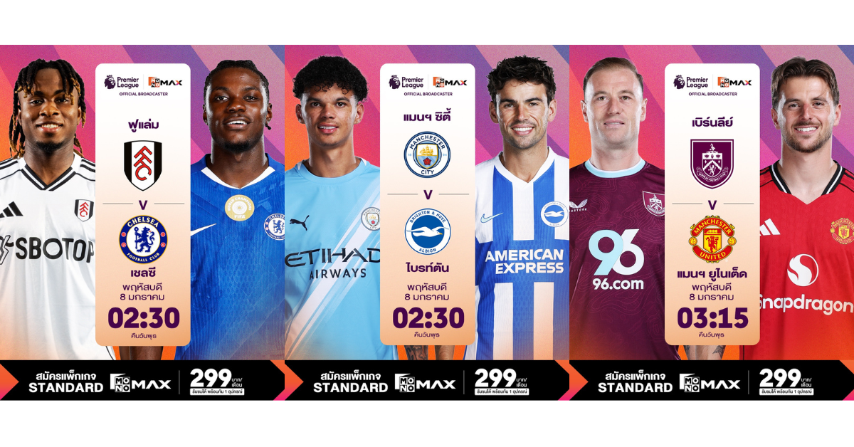 เข้าสู่ วันพฤหัสที่ 8 มกราคม 2569 (คืนวันพุธที่ 7 มกราคม 2569) อัดแน่นถึง 8 คู่เริ่มตั้งแต่เวลา 02.30 น. Monomax ยิงสดต่อเนื่องยาวตลอดคืน เปิดหัวด้วยเกมที่ บอร์นมัธ เปิดบ้านดวล ท็อตแนม ฮ็อตสเปอร์ โดยไก่เดือยทองต้องการสามแต้มเพื่อรักษาพื้นที่กลุ่มหัวตาราง ถัดมาเป็นศึกของ เบรนท์ฟอร์ด พบกับ ซันเดอร์แลนด์ เกมที่วัดกันทั้งความฟิตและวินัยแท็กติก ขยับไปที่ลอนดอนตอนใต้ คริสตัล พาเลซ เปิดรังรับมือ แอสตัน วิลลาเกมนี้น่าสนใจที่การดวลกันทั้งเกมรับที่มีระเบียบ พร้อมเกมรุกที่หลากหลาย ในเวลาเดียวกัน เอฟเวอร์ตัน ต้องเปิดกูดิสัน พาร์ก รับศึกหนักจาก วูล์ฟแฮมป์ตัน วันเดอเรอร์สเกมสำคัญที่ทั้งสองทีมต่างเน้นความรัดกุมและหวังฉวยโอกาสจากจังหวะสวนกลับ อีกหนึ่งเกมที่ถูกจับตามองคือดาร์บี้แห่งกรุงลอนดอน เมื่อ ฟูแลม เปิดบ้านปะทะ เชลซี เกมที่เต็มไปด้วยความเข้มข้นและศักดิ์ศรี แม้อันดับอาจต่างกัน แต่ความเดือดในสนามไม่มีคำว่ามิตรภาพ ซึ่งคู่นี้ถ่ายทอดสดพิเศษทั้ง Monomax และ ช่อง MONO29 ขณะเดียวกันที่เอติฮัด สเตเดี้ยม แมนเชสเตอร์ ซิตี้ เตรียมเปิดบ้านพบกับ ไบรท์ตัน แอนด์ โฮฟ อัลเบี้ยน เกมใหญ่ของคืนที่แฟนบอลต้องจับตา