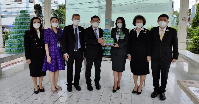 นางสาว อรรฆยา พลตื้อ กรรมการผู้จัดการ กลุ่มบริษัท วิชั่นกลาส กรุ๊ป มอบน้ำดื่มให้โรงพยาบาลปทุมธานี จำนวน 10,008 ขวด