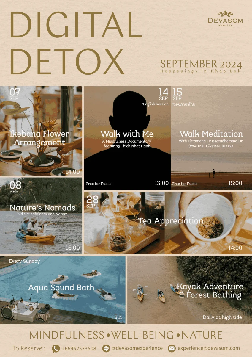 กิจกรรม DIGITAL DETOX แต่ละโปรแกรมเปิดรับจำนวนจำกัด ท่านใดสนใจสามารถจองล่วงหน้าได้ทาง
