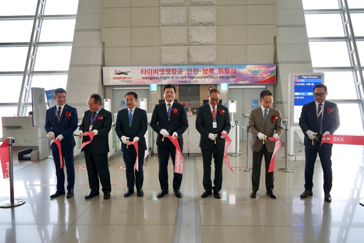 พิธีเปิดเที่ยวบินปฐมฤกษ์เที่ยวบินที่ VZ851 จัดขึ้นอย่างเป็นทางการเมื่อวันที่ 1 ตุลาคม 2568 ณ ท่าอากาศยานนานาชาติอินชอน โดยมีผู้บริหารจากหลายหน่วยงานที่มาร่วมแสดงความยินดีในการเปิดตัวในครั้งนี้ ได้แก่ นายธานี แสงรัตน์ เอกอัครราชทูตไทยประจำสาธารณรัฐเกาหลี, นายหลวง ทรุง อัน รองประธานเจ้าหน้าที่บริหาร สายการบินเวียตเจ็ทไทยแลนด์, นายชิน ดง อิก ผู้อำนวยการ ท่าอากาศยานนานาชาติอินชอน, นายพัฒนพงศ์ พงษ์ทองเจริญ ผู้อำนวยการสำนักงานการท่องเที่ยวแห่งประเทศไทย ณ กรุงโซล ตลอดจนแขกผู้มีเกียรติจากไทยและเกาหลีใต้ที่ให้เกียรติมาร่วมพิธีตัดริบบิ้นเพื่อเปิดตัวเที่ยวบินปฐมฤกษ์อย่างเป็นทางการ ทั้งนี้สายการบินเวียตเจ็ทไทยแลนด์ได้มีการมอบของที่ระลึกพิเศษให้แก่ผู้โดยสารเที่ยวบินแรก โดยเป็นการตอกย้ำความร่วมมืออันแน่นแฟ้นระหว่างเกาหลีใต้และประเทศไทย