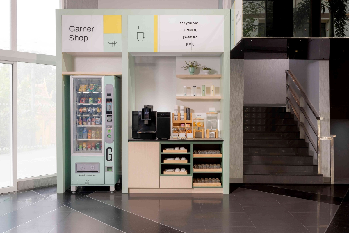 Garner Shop ซึ่งเปิดให้บริการตลอด 24 ชั่วโมง มีบริการของว่าง รวมถึงกาแฟและชาแบบชงสดจากเครื่อง (bean-to-cup) ให้บริการฟรีบริเวณล็อบบี้ เพื่ออำนวยความสะดวกและตอบโจทย์ทุกความต้องการของผู้เข้าพักตลอดการเข้าพัก นอกจากนี้ โรงแรมยังมีสิ่งอำนวยความสะดวกเพิ่มเติม อาทิ The Gather Café ร้านอาหารบรรยากาศสบาย ๆ ที่ผสานพื้นที่รับประทานอาหารและพื้นที่ทำงานร่วมกัน รวมถึงบริการห้องซักผ้าแบบบริการตนเองตลอด 24 ชั่วโมง ผู้เข้าพักสามารถออกกำลังกายที่ฟิตเนสบนดาดฟ้า หรือผ่อนคลายด้วยการว่ายน้ำในสระว่ายน้ำบนดาดฟ้าได้ตามต้องการ