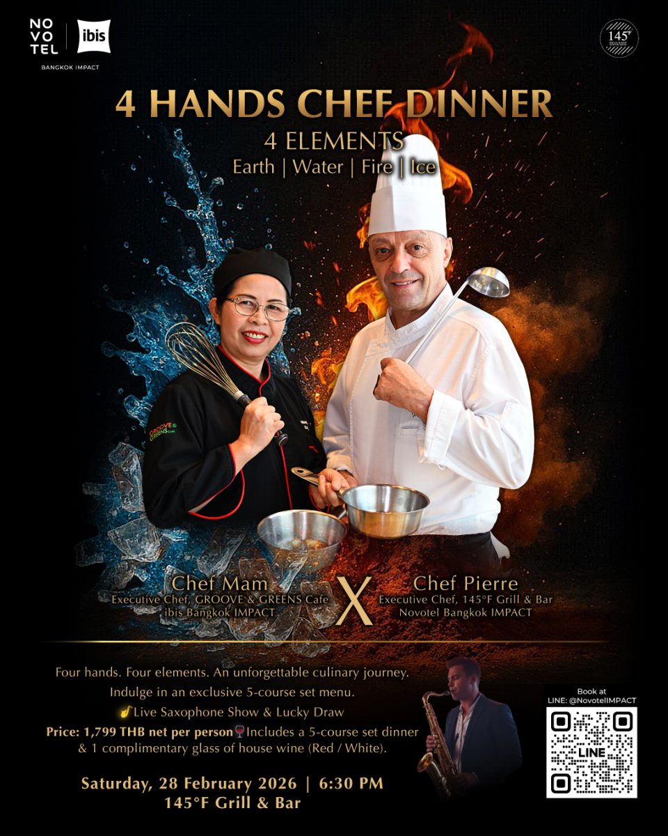 ขอเชิญร่วมงาน 4 Hands Chef Dinner – 4 Elements Edition สุดเอ็กซ์คลูซีฟ สัมผัสค่ำคืนแห่งความคิดสร้างสรรค์ด้านอาหารโดย โรงแรม โนโวเทล และ ไอบิส กรุงเทพ อิมแพ็ค