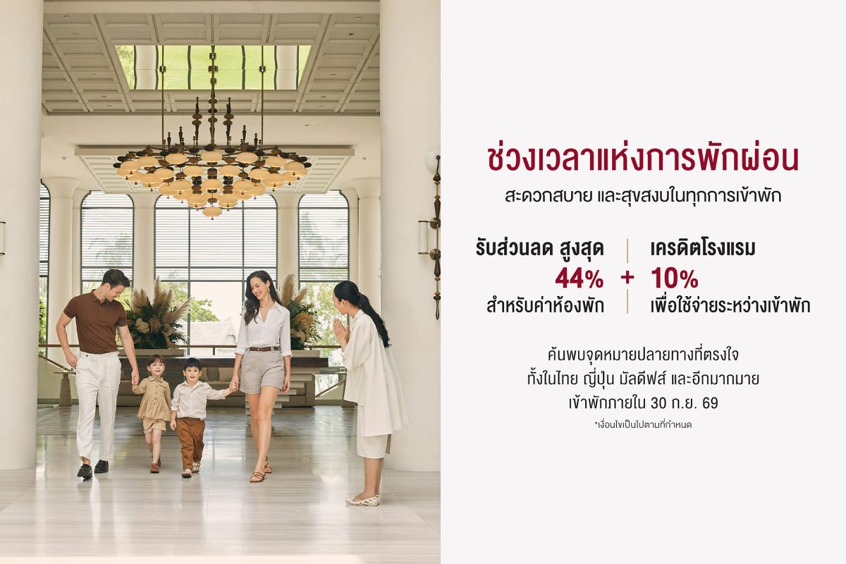 เซ็นทารามอบข้อเสนอ “A Place to Pause” ยิ่งพักนาน ยิ่งคุ้ม ลดสูงสุด 44% ณ หลากหลายจุดหมายปลายทางทั่วโลก