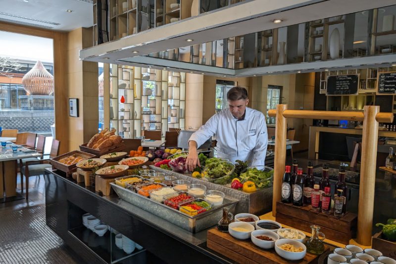 ห้องอาหารเลเทส เรซิพี ณ โรงแรมเลอ เมอริเดียน สุวรรณภูมิ กรุงเทพฯ กอล์ฟ รีสอร์ท แอนด์ สปา ขอนำเสนอประสบการณ์มื้อเที่ยงน่าลิ้มลอง เติมพลังช่วงบ่ายอย่างจุใจไปกับเมนูเนื้อคุณภาพพรีเมียม อาทิ เนื้ออกไก่ เนื้อหมู เนื้อวัวและเนื้อแกะนำเข้า เนื้อปลากะพงหรือแซลมอน เลือกรายการที่คุณชื่นชอบและให้ทีมเชฟย่างร้อนๆจากเตาและทานคู่กับบุฟเฟต์สลัดบาร์สดใหม่หรือเมนูสลัดปรุงพร้อมทาน เมนูบะหมี่เย็นและขนมปังอบใหม่ทุกวัน ปิดท้ายด้วยไอศกรีมเจลาโต้และผลไม้ประจำฤดูกาล อิ่มอร่อยเติมได้ไม่อั้นทุกวันจันทร์ถึงศุกร์เวลา 1200 น. ถึง 1400 น.